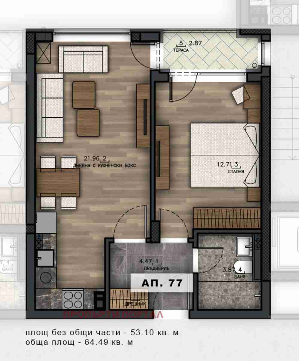 Предлагаме за продажба 2-стаен апартамент в новострояща се жилищна сграда.